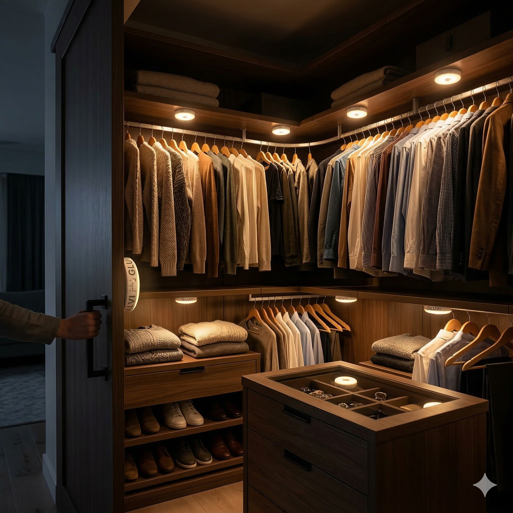 With a sleek design, magnetic installation, and rechargeable battery, Gluvi is perfect for bedrooms, hallways, closets, stairs, and more.