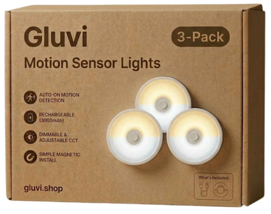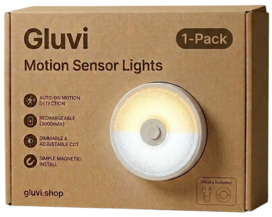 Gluvi Motion Sensor Lights are designed to make your home safer and more convenient at night. No more searching for switches in the dark — the light automatically turns on when it detects movement and turns off when not needed.